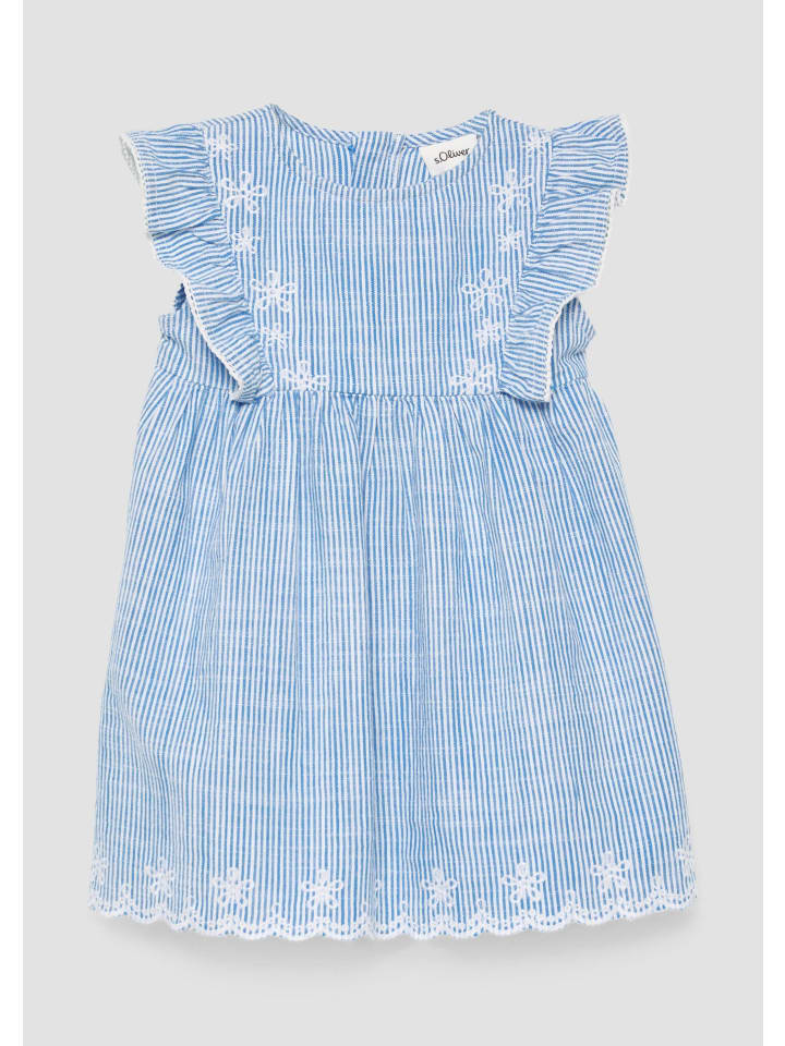 Очаровательное хлопковое платье для праздников! Это платье в тонкую полоску с оборками и А-силуэтом порадует маленьких принцесс. Круглый вырез горловины и короткая длина обеспечивают комфорт. Идеально подходит для летних вечеринок или семейных торжеств - универсальная изюминка гардероба. Платье легко надевать благодаря потайной молнии.