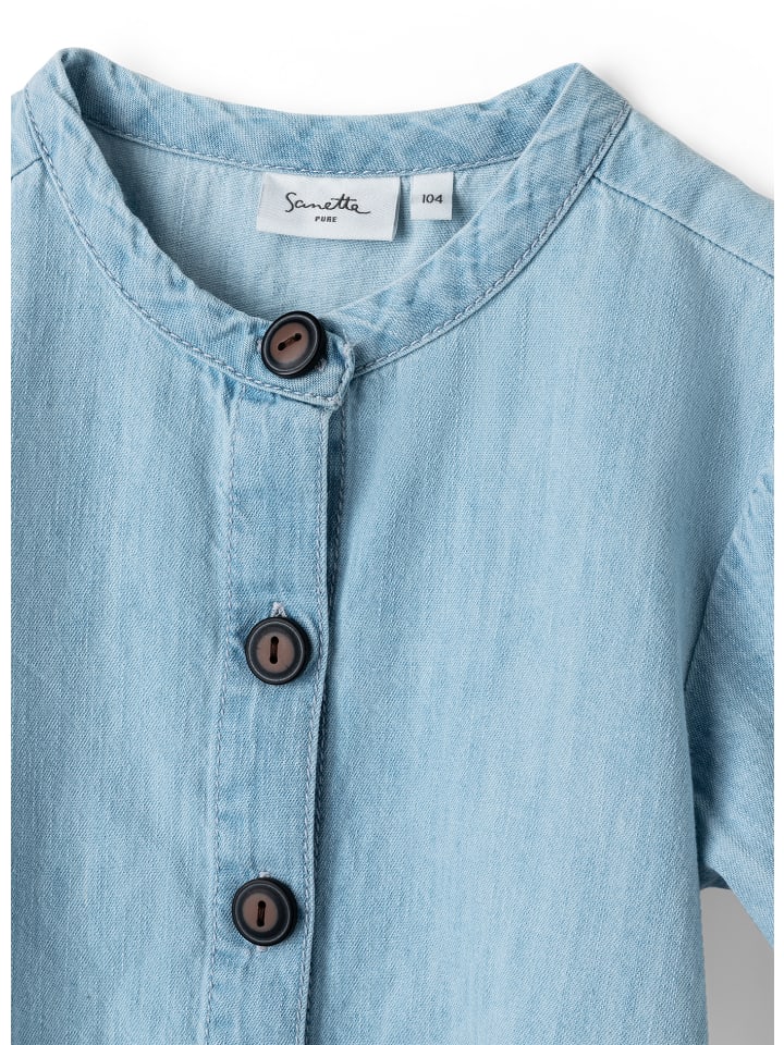 Модное джинсовое платье для девочек от Sanetta Pure с милой планкой на пуговицах и рукавами-буфами.