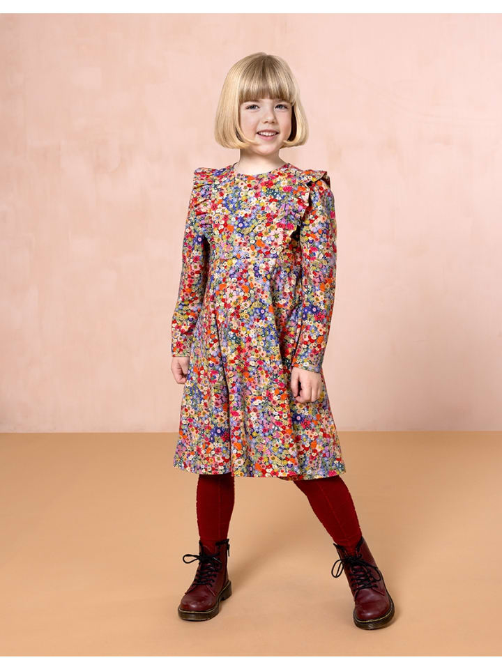 Для принта «Шотландский сад» мы нарисовали цифровым способом небольшие цветы. Узор выглядит просто сказочно на этом платье с воланами. - 96% органический хлопок, 4% эластан. - Сделано в Северной Македонии.