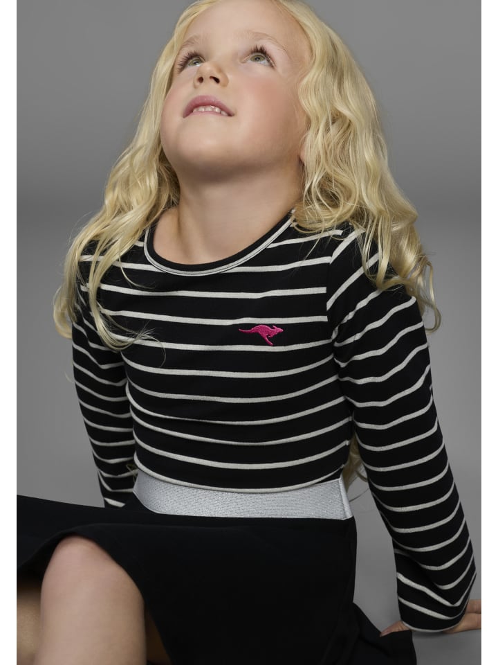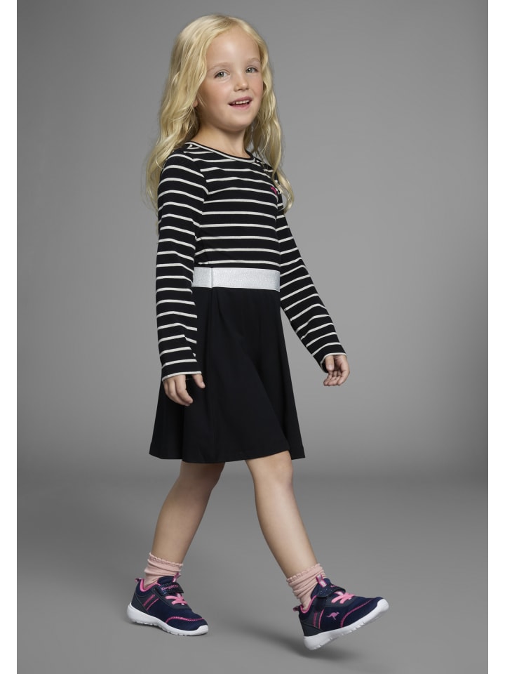 Полосатое платье для девочек от KangaROOS. Полосатый верх, расклешенная юбка.