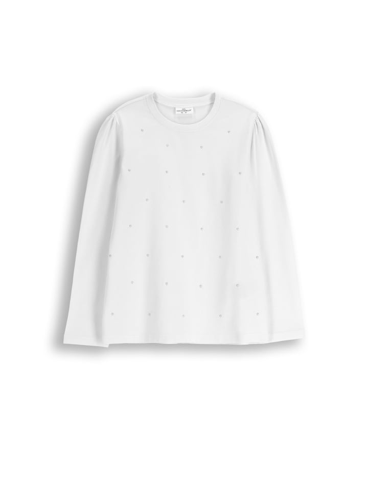 Откройте для себя уникальную рубашку с длинными рукавами, сочетающую в себе элегантность и комфорт. Изготовленная из эластичного хлопка, она обеспечивает свободу движений и идеально подходит для активных девочек. Белый цвет подойдет для любого случая, от повседневных прогулок до более официальных встреч. Декоративные бусины изящно украшают переднюю часть рубашки, добавляя ей очарования и изящества. Округлый вырез горловины и рукава-буфы подчеркивают ее элегантный характер, не стесняя движений. Благодаря сертификации ECO 5 вы можете быть уверены, что выбираете безопасный и экологически чистый продукт. Эта рубашка - идеальный выбор для девочек от 4 до 15 лет, которые ценят стиль и комфорт. Идеально сочетается с любимыми брюками или юбкой, создавая наряды на любой случай.