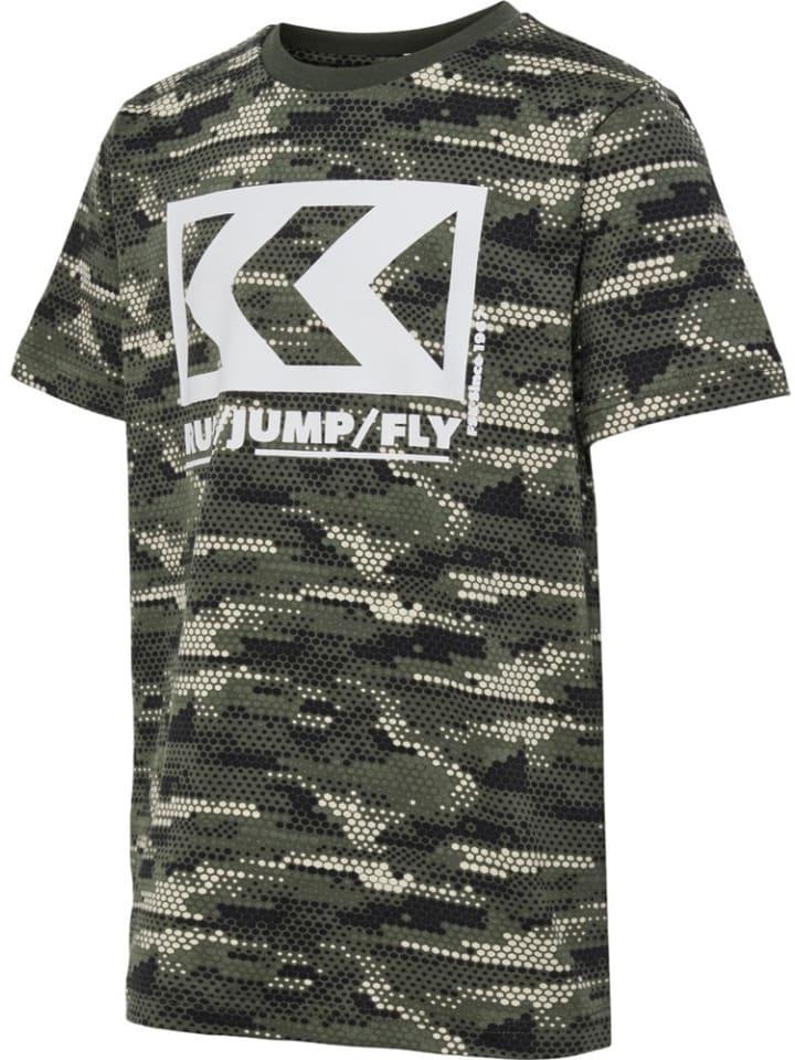 Футболка hmlFSK LOW T-SHIRT S/S - классическая футболка из любимой детской серии с круглым вырезом и короткими рукавами, полностью изготовленная из органического хлопка. Надпись «RUN/JUMP/FLY» гордо красуется спереди под культовыми шевронами Hummel и прекрасно дополняется напечатанным логотипом Flying Superkids на спине.