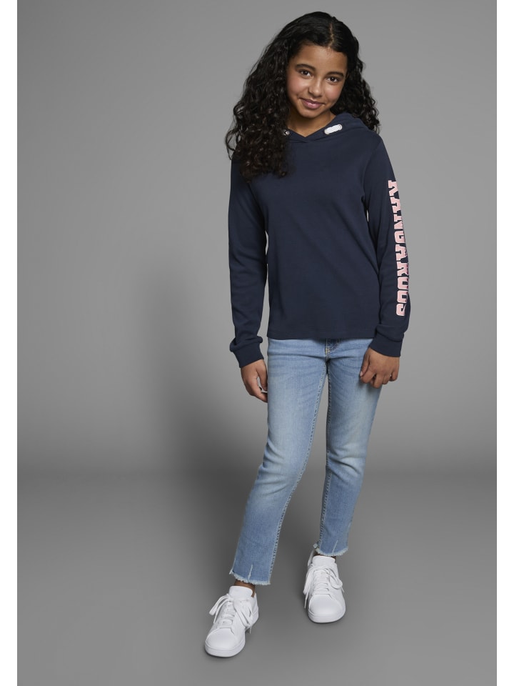 Эта рубашка KangaROOS с длинными рукавами украшена принтом. Она имеет прямой крой до бедер и практичный капюшон. Трикотаж интерлок делает ее удобной и прочной.