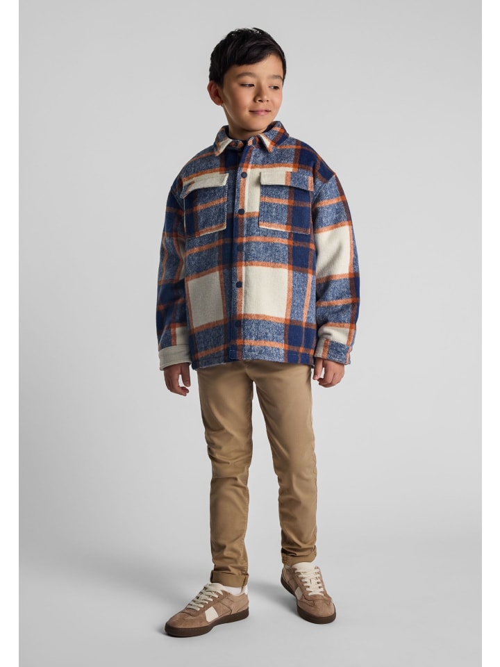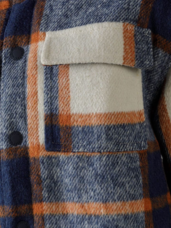 Универсальная рубашка свободного кроя для мальчиков с клетчатым рисунком и стеганой подкладкой. Верхний материал из смесовой шерсти обеспечивает тепло и мягкость. Кнопки на передней планке и манжетах позволяют легко надевать и снимать. Нагрудные карманы обеспечивают достаточно места для хранения. Идеальная куртка для прохладных дней.