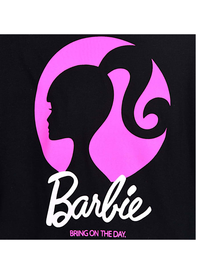 Знаменитый логотип Барби ярко-розового цвета создает классный контраст с черной тканью и, несомненно, привлечет внимание.