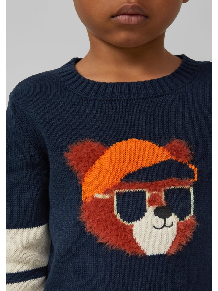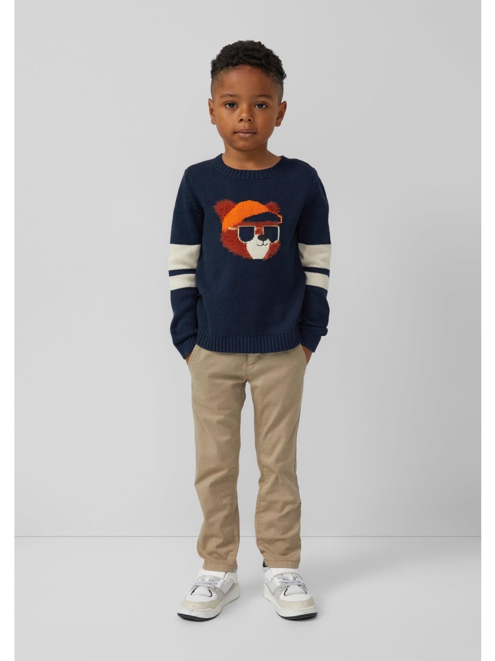 Уютный трикотажный свитер с контрастными полосками и мягкой плюшевой интарсией. Высококачественный хлопковый смесовый материал, а также ребристые манжеты и низ обеспечивают комфортную носку. Спортивный дизайн с цветовыми блоками делает этот свитер прямого кроя стильным повседневным аксессуаром.