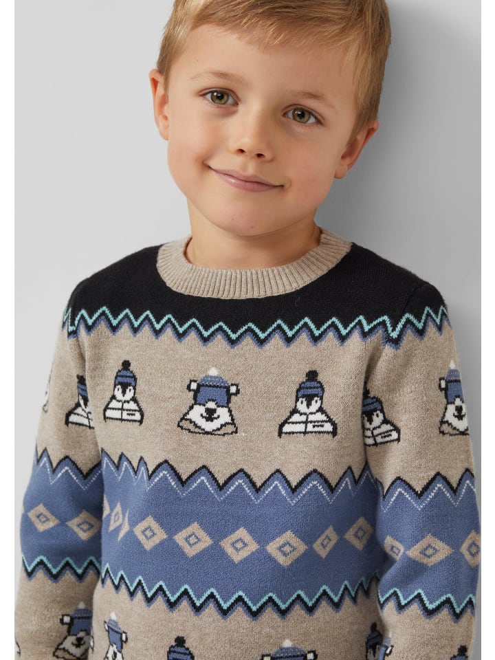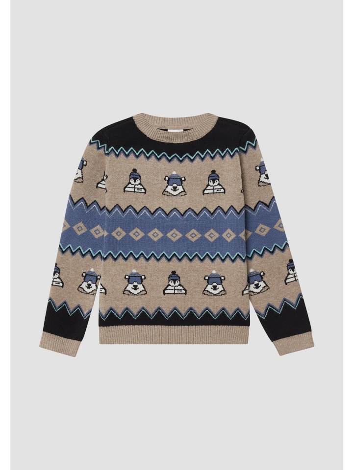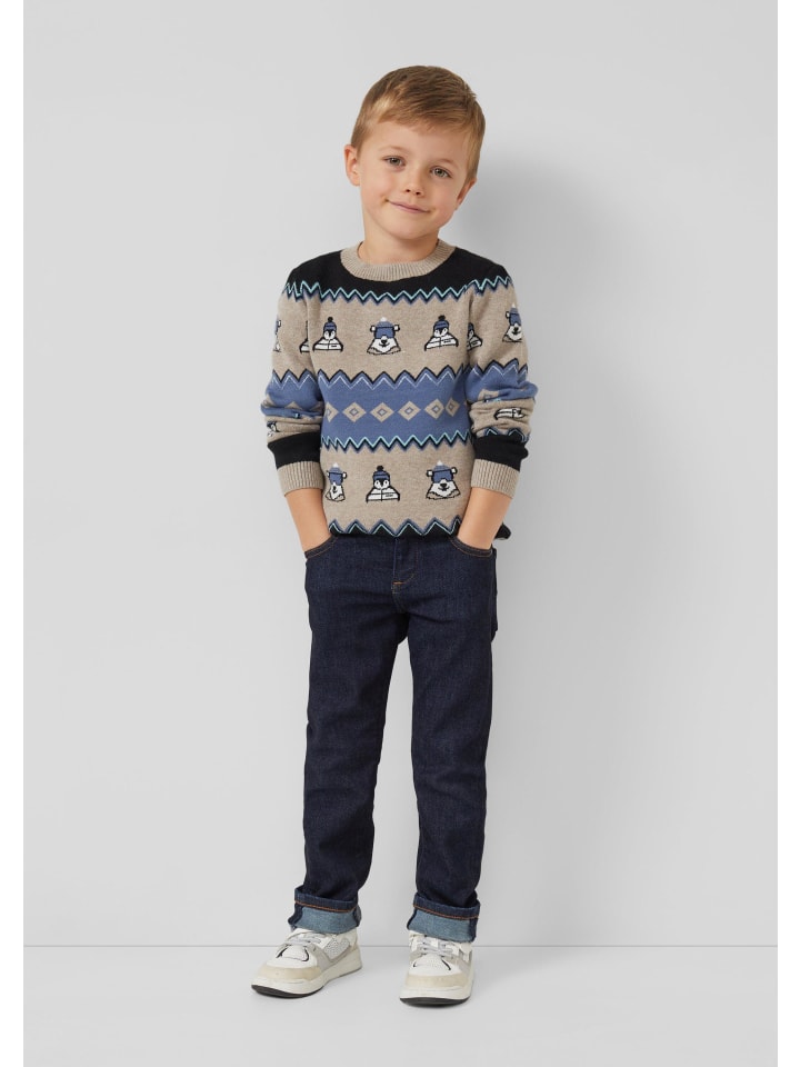 Теплый жаккардовый свитер с элегантным узором по всей поверхности. Мягкая эластичная ткань и удобный классический крой обеспечивают приятный комфорт. Классический круглый вырез горловины и практичные ребристые манжеты - стильный спутник для прохладных дней.