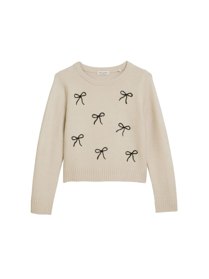 Повседневный образ с милой изюминкой: этот свитер прямого кроя выполнен из мягкой смеси переработанного полиэстера и шерсти. Ребристые манжеты и контрастная вышивка в виде банта добавляют стильные акценты.