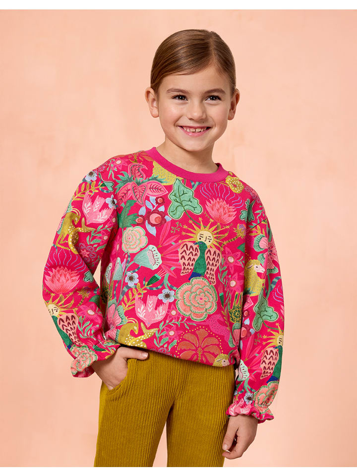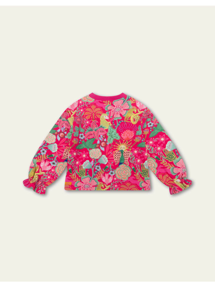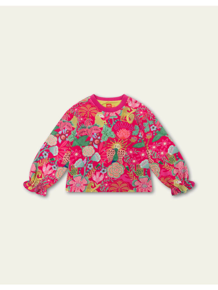 Принт «Шотландские сокровища» с шотландскими цветами выглядит просто потрясающе на этом слегка эластичном свитере. Манжеты отделаны очаровательными оборками. - 95% органический хлопок, 5% эластан. Сделано в Португалии.