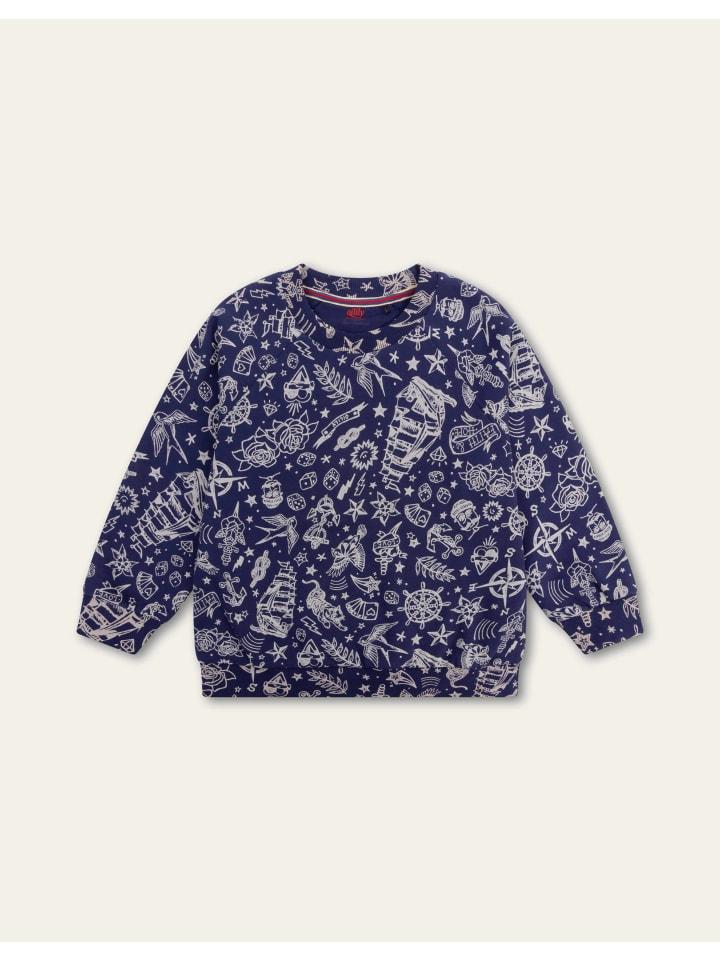 Моряки часто делали новые татуировки в каждом порту. Мы воссоздали их для этого свитера - он весь в них! Веселенький, правда? - 100% хлопок - Сделано в Индии