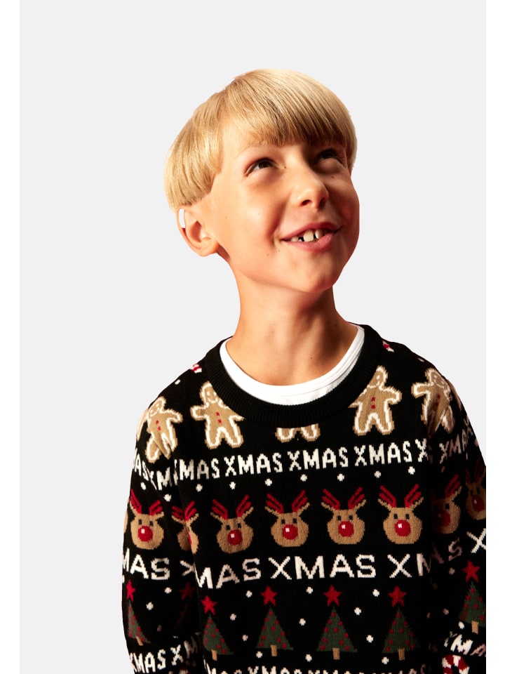 Этот свитер привнесет рождественское настроение в повседневную жизнь. Тонкая трикотажная ткань придает ему элегантную текстуру и обеспечивает приятную мягкость. Его праздничный дизайн создает жизнерадостную атмосферу - идеально для холодных зимних дней. Классический крой и длина обеспечивают оптимальную свободу движений. Ребристые манжеты на рукавах, подоле и вырезе сохраняют форму и обеспечивают комфортную посадку. Благодаря эластичным манжетам свитер легко надевать и снимать. Тканая этикетка внутри символизирует продуманные детали и качество. Этот свитер всегда будет отлично смотреться с джинсами, юбкой или леггинсами. Идеально подходит для школы, семейных посиделок или уютных домашних часов. Любимая вещь, излучающая праздничное тепло!