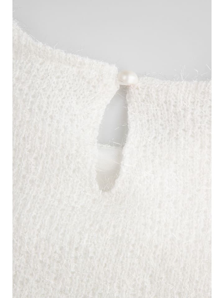Откройте для себя этот уникальный свитер с короткими рукавами, который станет любимым в гардеробе вашей дочери. Этот свитер цвета экрю, изготовленный из тонкой пряжи, отличается утонченным и элегантным видом. Круглый вырез добавляет очарования, а застежка на пуговицы сзади позволяет легко надевать его. Этот свитер - идеальный выбор для особых случаев, таких как семейные встречи или вечеринки. Его легкая конструкция обеспечивает комфортную носку и стильный внешний вид. Благодаря сертификации ECO 5 вы можете быть уверены, что изделие соответствует самым высоким стандартам безопасности и экологичности. Этот свитер доступен в размерах для девочек от 4 до 15 лет и идеально сочетается с элегантными юбками или брюками, создавая гармоничный и модный образ. Выберите качество и стиль, которые понравятся и вам, и вашему ребенку.