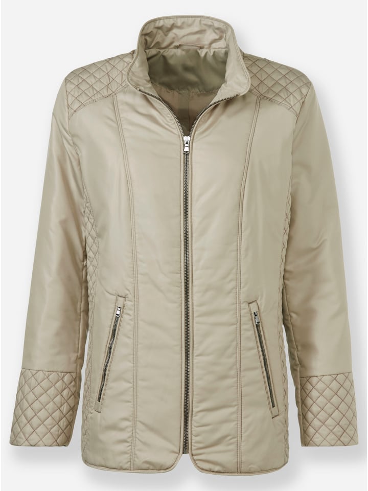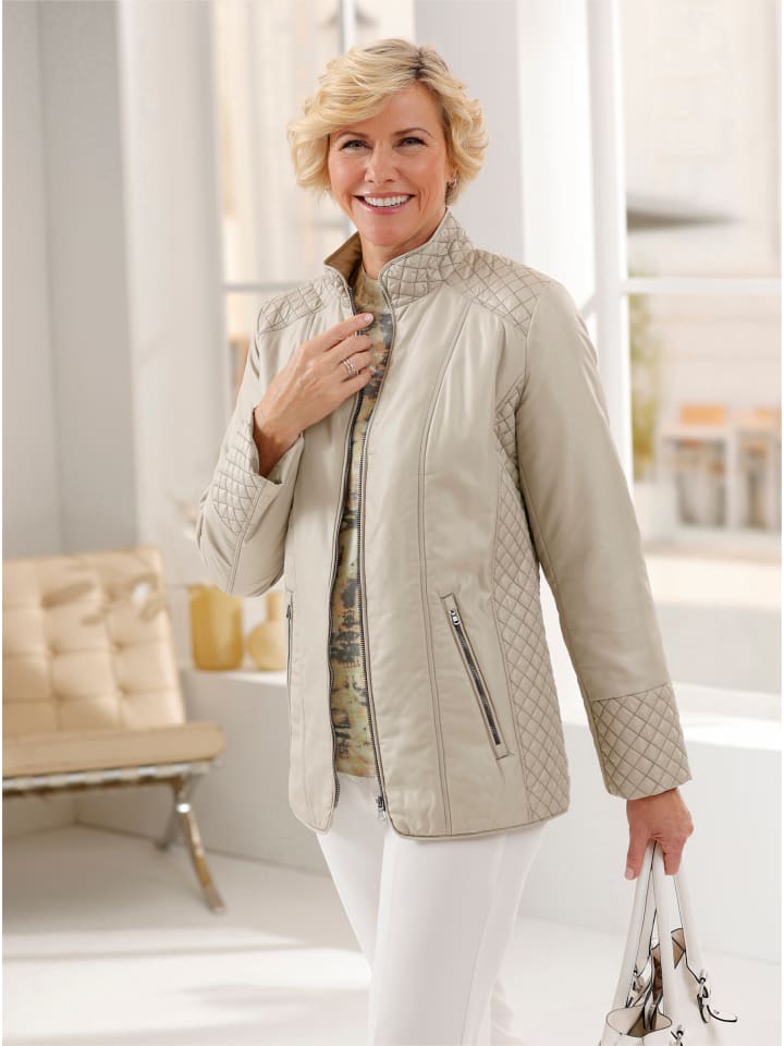 Куртка, подчеркивающая фигуру, с эффектной стежкой: передняя кокетка обеспечивает хорошую посадку, а передние и задние швы создают привлекательный силуэт! Воротник-стойка, два прорезных кармана на молнии и один внутренний карман на пуговице. Молния во всю длину.