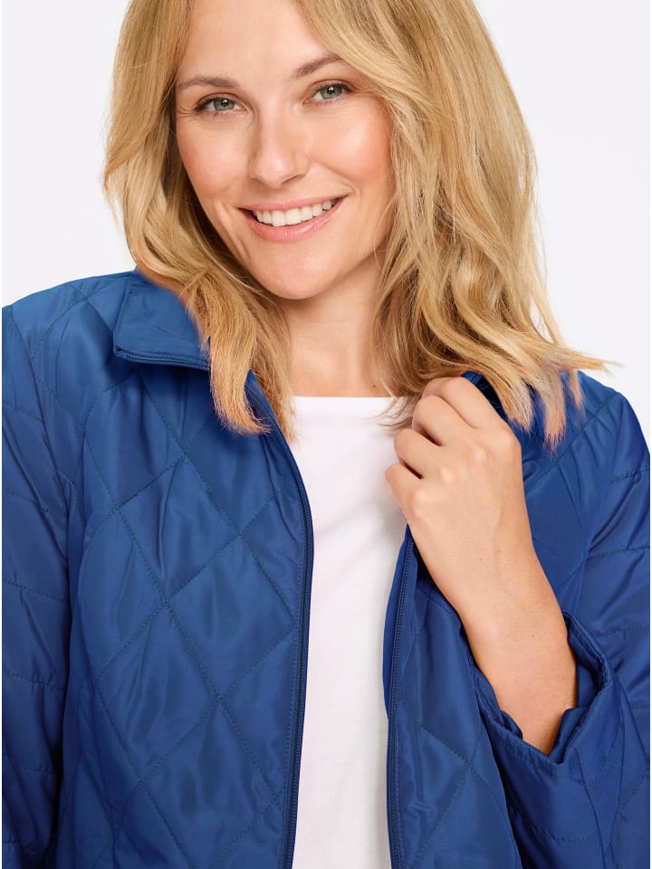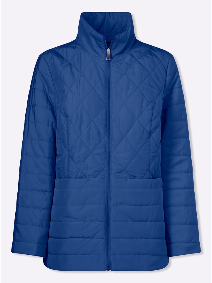 Эта легкая стеганая куртка с комбинацией горизонтальной и ромбовидной стежки станет прекрасным дополнением к межсезонью. Отложной воротник можно застегивать, превращая его в теплый воротник-стойку. Куртка застегивается на молнию, имеет два кармана в передних швах и формирующие швы. Изготовлена из переработанного полиэстера.