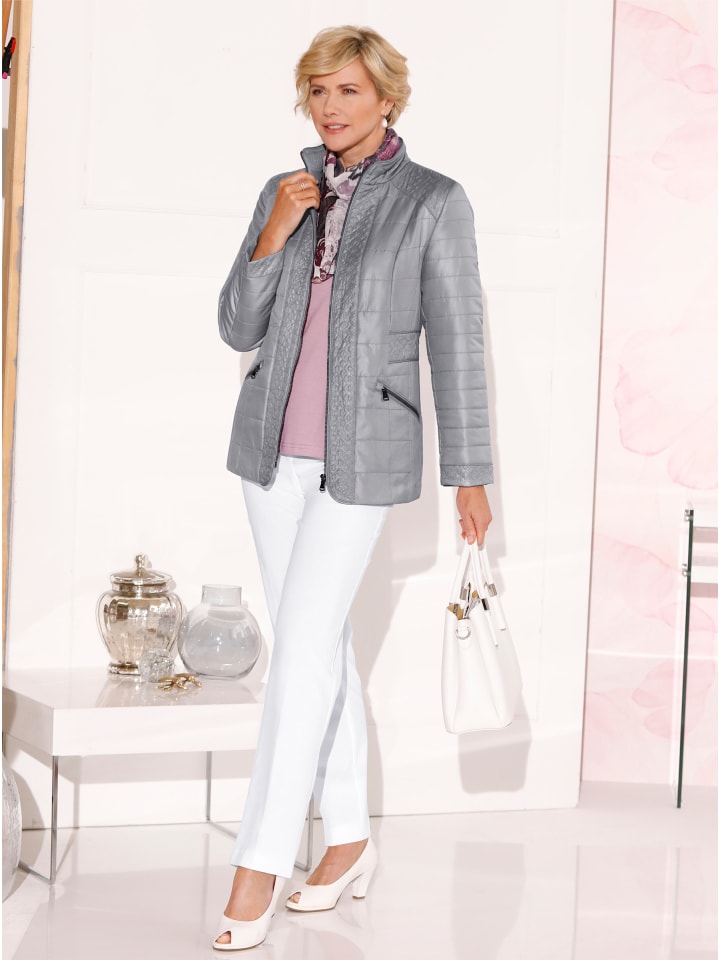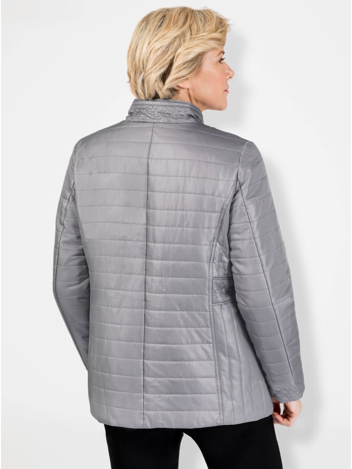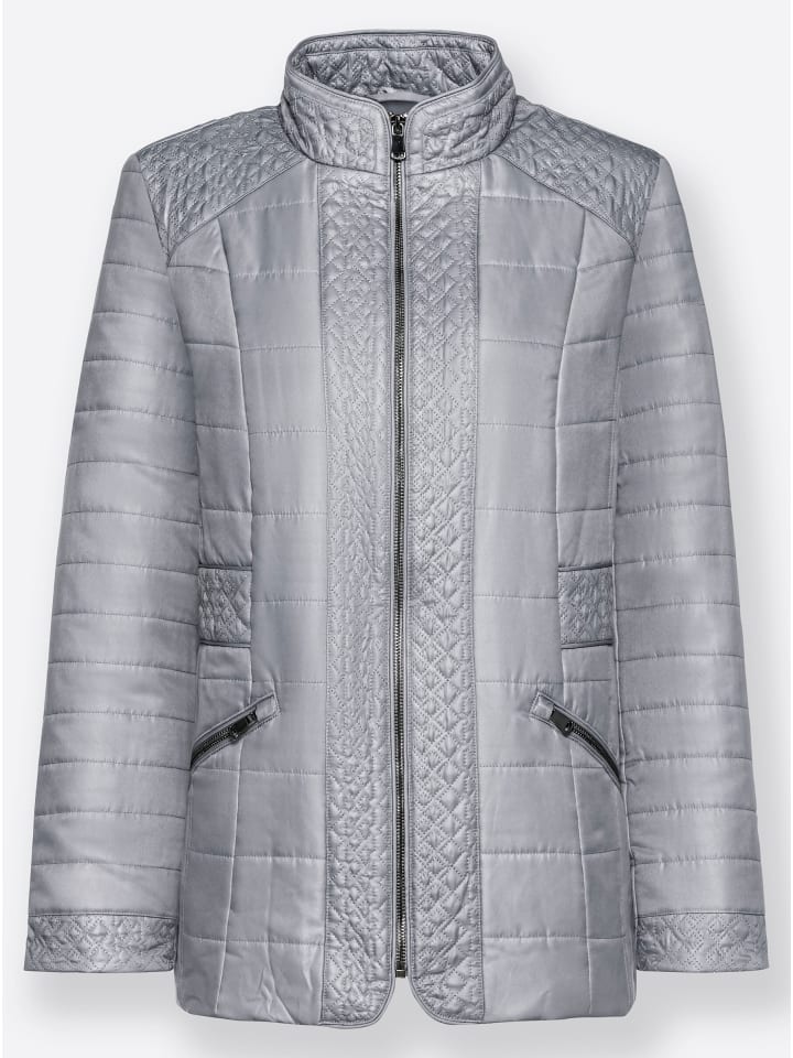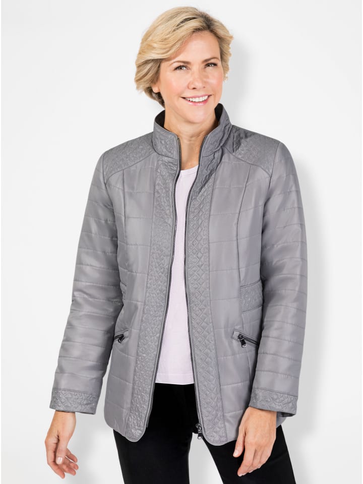 Идеально подходит для межсезонья! Куртка с разнообразным стеганым узором. Воротник-стойка и застежка на молнию. Формирующие швы спереди и сзади. Боковые карманы на молнии. Скошенные плечевые кокетки спереди. Один внутренний карман на пуговицах.