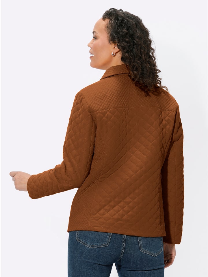 Идеально подходит для межсезонья: Стеганая куртка с шикарным ромбовидным узором из высококачественной микрофибры. Отложной воротник. Детали: длинная молния, скрытая планкой на кнопках, длинные рукава, практичные карманы и внутренний карман на пуговицах. Боковые стеганые вставки визуально удлиняют фигуру.