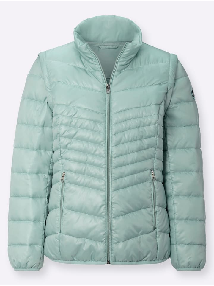 Одна модель - множество возможностей: эта стеганая куртка мгновенно трансформируется в жилет, достаточно просто расстегнуть молнии на рукавах! Высококачественная конструкция с легкой стежкой и особенно привлекательной внутренней отделкой. Воротник-стойка, эластичные манжеты и два кармана на молнии в швах.