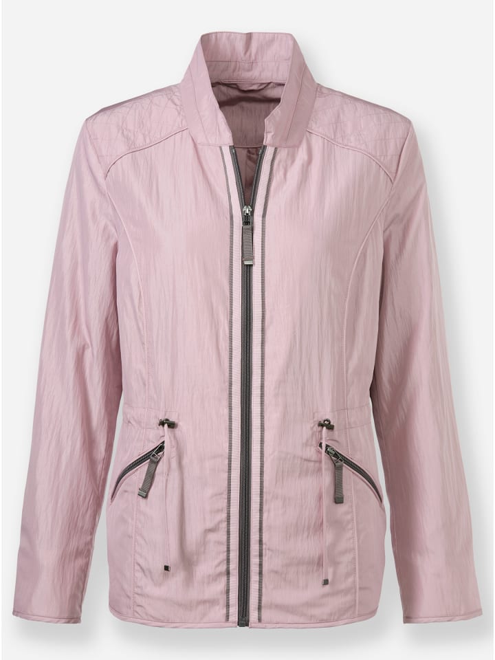 Ваш идеальный спутник для межсезонья: куртка с легким жатым эффектом и легким блеском. Модный воротник-стойка и эффектная контрастная окантовка вдоль молнии и на косых карманах на молнии. Талия регулируется шнурком и ремешком. Длинные рукава.