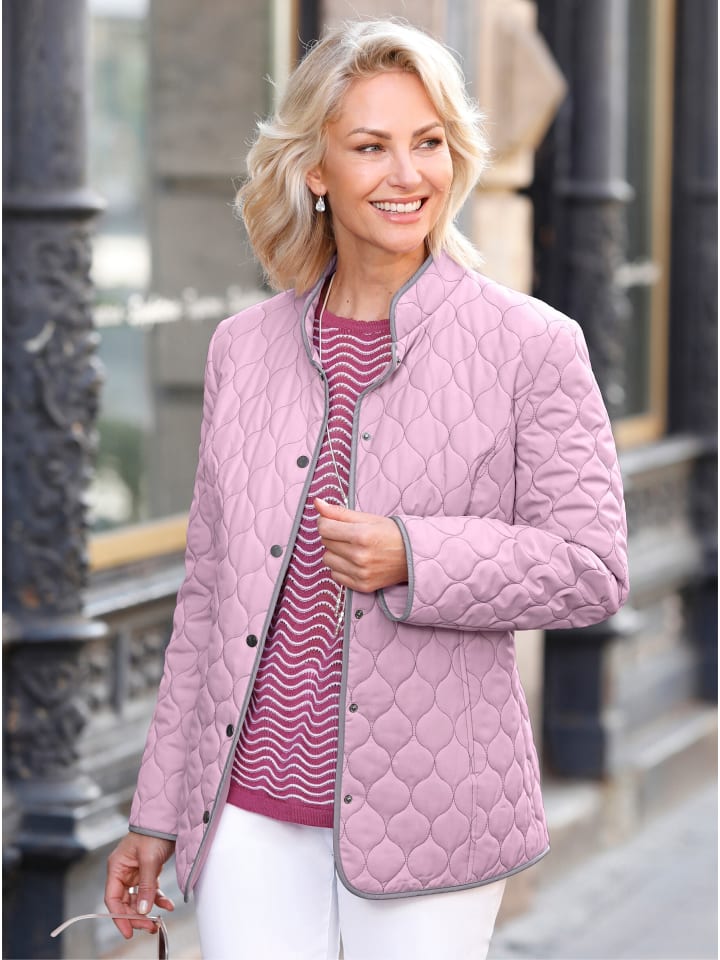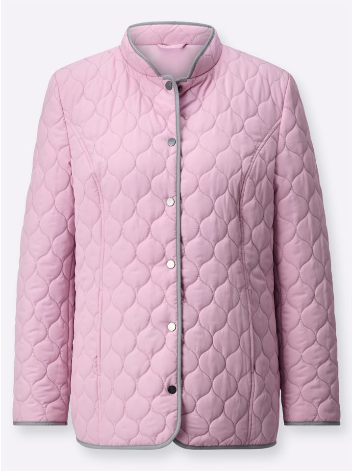 Идеальный спутник для межсезонья! Эта легкая теплая стеганая куртка с декоративной контрастной окантовкой и стеганым узором, подчеркивающим фигуру. Куртка имеет защитный воротник-стойку и застежку на кнопки по всей длине. Практичные карманы расположены на моделирующих швах.