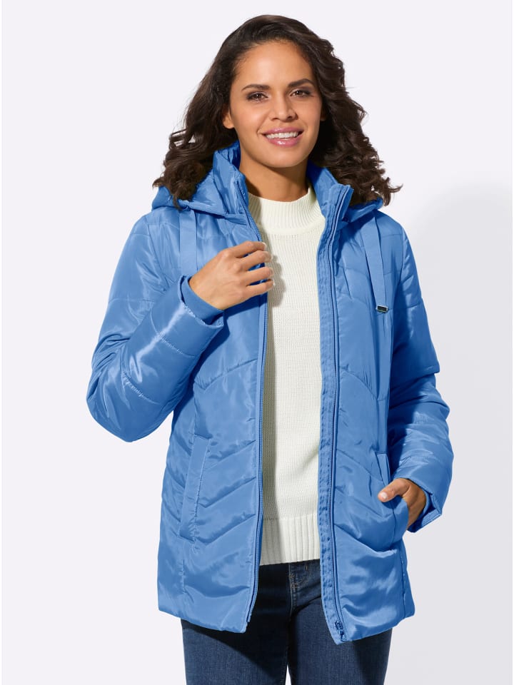 Всегда в движении с этой теплой стеганой курткой! Съемный капюшон регулируется шнурком и фиксатором. Воротник-стойка и молния. Ветрозащитный трикотажный манжет на рукавах. Два кармана и один практичный внутренний карман. Ажурные швы обеспечивают идеальную посадку.