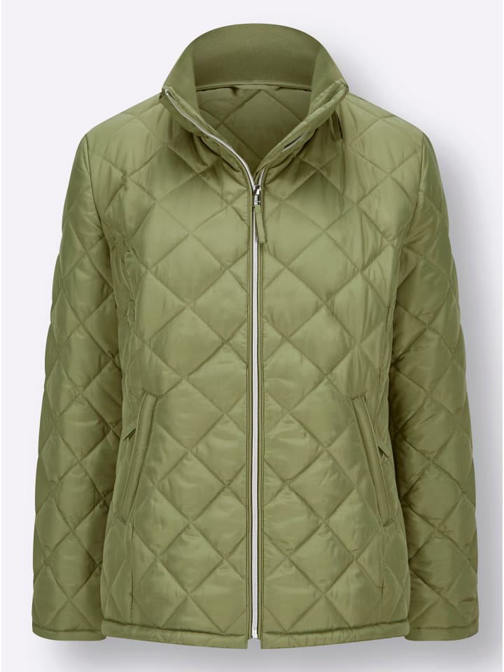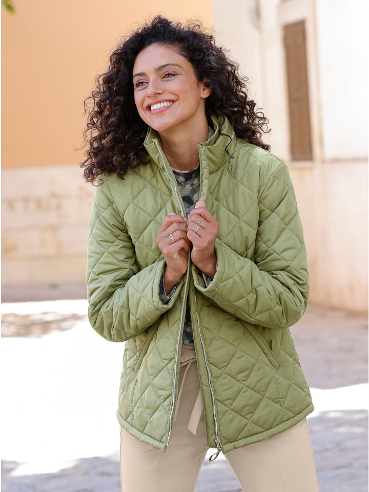 Эта стеганая куртка с привлекательным ромбовидным узором стройнит, невероятно легкая и при этом удивительно теплая благодаря инновационной сэндвич-стежке. Это означает, что внешняя ткань, наполнитель и подкладка простегиваются в один слой. Изюминкой является двойной воротник-стойка. Капюшон скрыт под молнией снаружи, а мягкая эластичная трикотажная ткань в рубчик ласкает кожу изнутри. Особенности: планка и молния во всю длину, два потайных кармана на молнии с уютной флисовой подкладкой и внутренние карманы. Куртка также может похвастаться моделирующими швами «принцесса», теплым утеплителем, декоративной ромбовидной стежкой и капюшоном, вшитым в воротник.