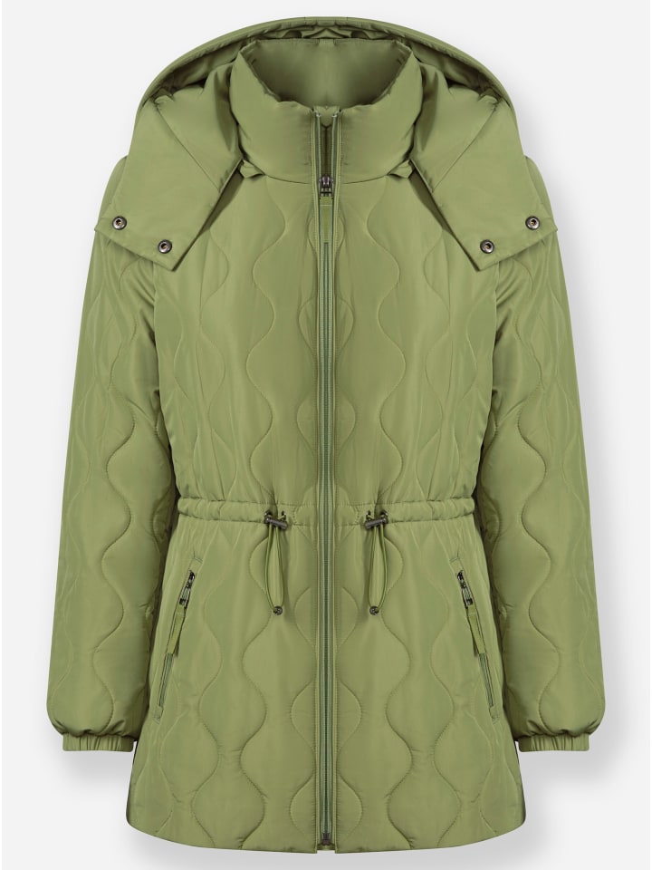 Эта стеганая куртка длиной до бедер отлично выглядит и согревает вас в холодное время года. Капюшон отстегивается на молнии и застегивается спереди на две кнопки для оптимальной защиты. Куртка имеет воротник-стойку, ветрозащитную планку и молнию во всю длину с карманом для молнии, предотвращающим зацепление и натирание. Талия затягивается шнурком с эластичным шнуром и фиксаторами для индивидуальной посадки. Длинные рукава имеют эластичные манжеты. Два кармана на молнии с подкладкой из мягкого теплого флиса. Также имеется один внутренний карман. Изготовлена из переработанного полиэстера.