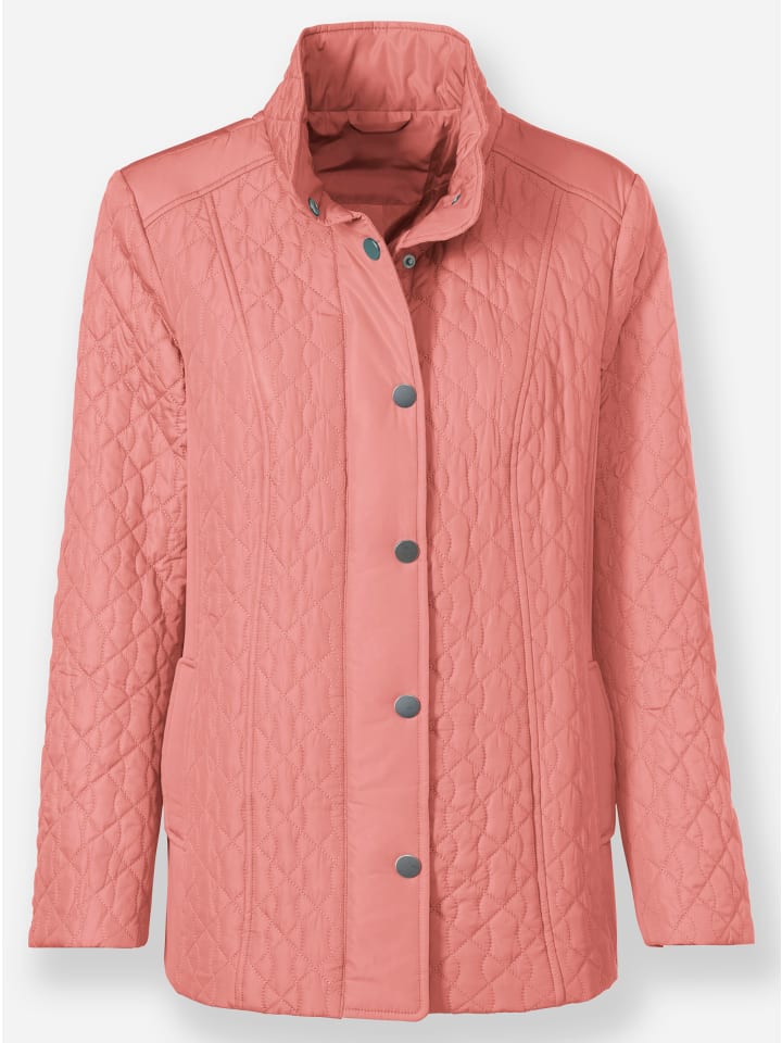 Идеально подходит для межсезонья: легкая теплая куртка с привлекательным стеганым узором. Изящные однотонные боковые вставки. Воротник-стойка, длинная планка с застежкой на кнопки и дополнительной потайной молнией. Формирующие швы для идеальной посадки. Два кармана, один внутренний карман на пуговице.