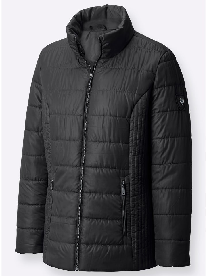 С удлиняющей вертикальной стежкой по бокам: эта стеганая куртка с легкой подкладкой создает привлекательный силуэт! Воротник-стойка, молния по всей длине, рельефные швы спереди и сзади. 2 кармана на молнии, 1 внутренний карман на пуговице.
