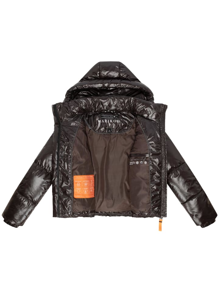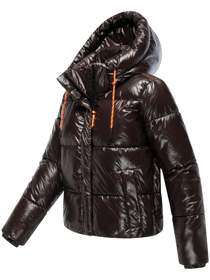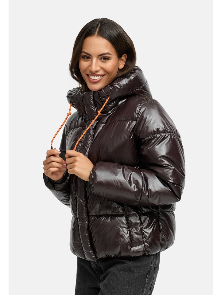- Блестящая женская стеганая куртка со съемным капюшоном