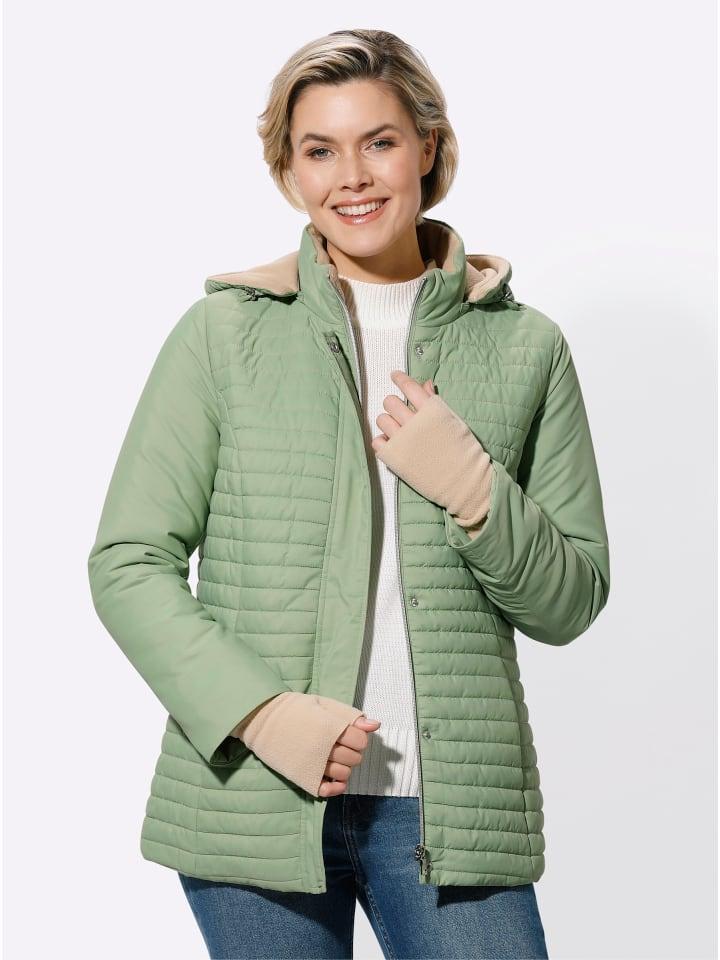 При покупке этой теплой и мягкой стеганой куртки вы получите флисовые перчатки! Она украшена привлекательным стеганым узором на съемном капюшоне на молнии, а также спереди и сзади. Молния скрыта под планкой на кнопке. Также имеется внутренний карман на пуговицах. Теплый флис выложен внутренней стороной воротника-стойки, внутренней стороной капюшона и карманами в швах формирующих швов.