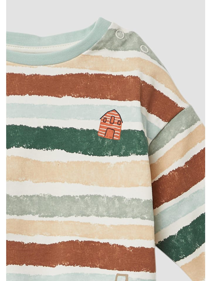 Эта уютная толстовка с принтом по всей поверхности и спереди впечатляет мягкой тканью и удобным свободным кроем. Круглый вырез горловины с ребристой отделкой и боковыми кнопками позволяет легко надевать и снимать ее. Идеально подходит для уютных дней дома или игр на детской площадке.