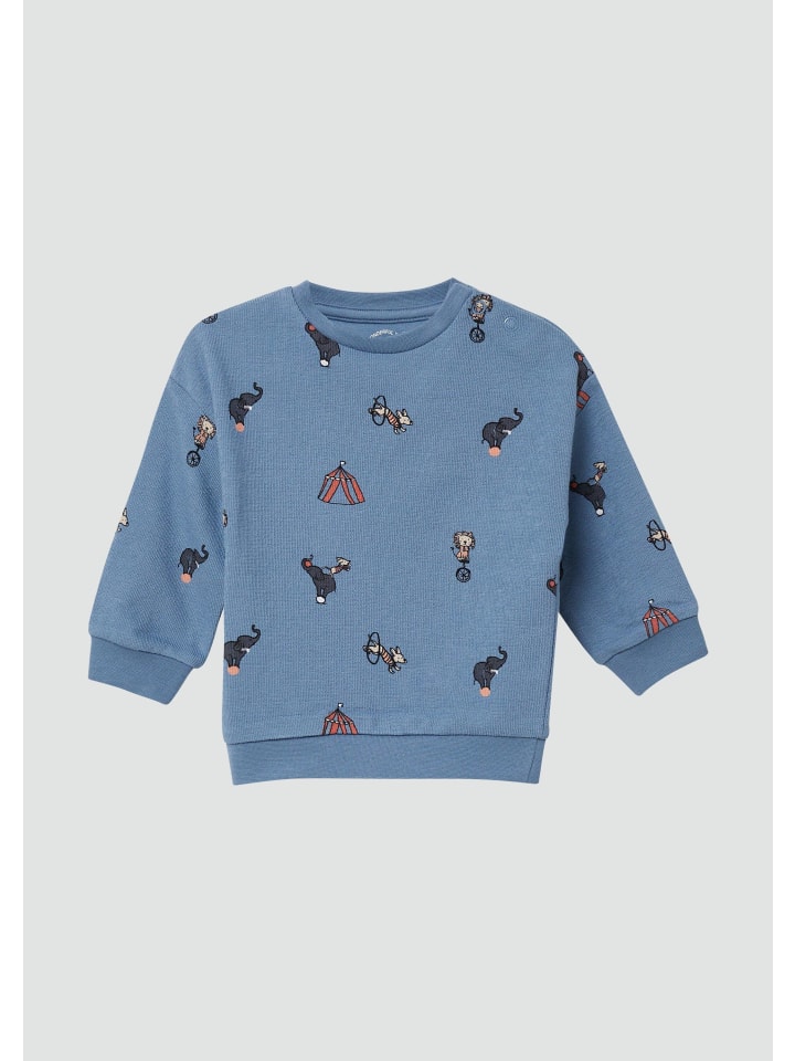 Уютная толстовка с игривым принтом по всей поверхности для вашего малыша. Текстурированный хлопковый трикотаж согревает и не раздражает кожу. Практичные боковые застежки-кнопки позволяют легко надевать и раздевать малыша. Круглый вырез горловины с ребристой отделкой и свободный крой обеспечивают комфорт для активных игр.