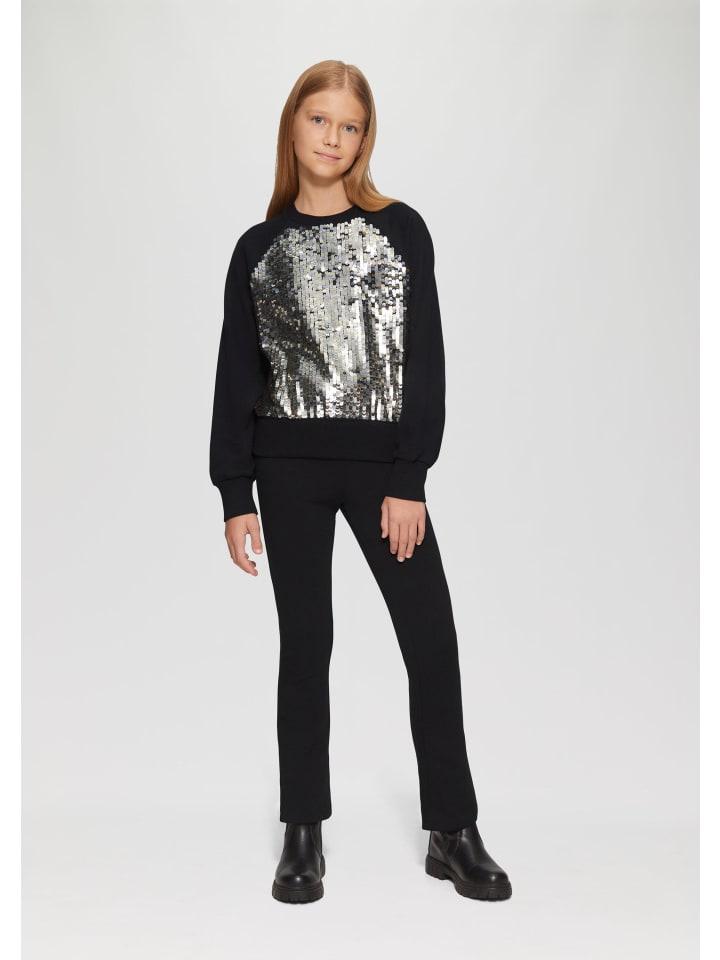 Стильная толстовка с пайетками для подростков, следящих за модой. Классический крой и вырез горловины обеспечивают комфорт. Идеально подходит для прохладных осенних нарядов или праздничных случаев. Сочетайте с джинсами, чтобы создать модный повседневный образ для вашего ребенка. Изготовлена из мягкой хлопковой смеси с практичным ребристым краем.