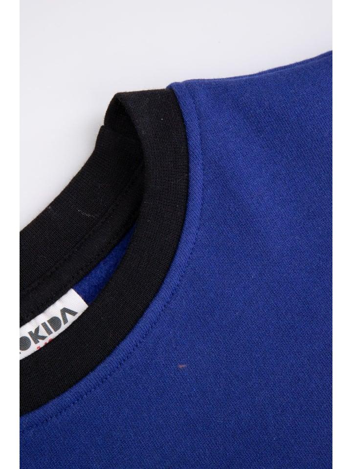 Откройте для себя комфорт и стиль с нашей толстовкой для мальчиков, идеально подходящей для прохладных дней. Изготовленная из мягкого трикотажа с начесом, она согревает благодаря флисовой подкладке. Толстовка отличается эффектным трехцветным дизайном: сочетание яркого синего, энергичного оранжевого и классического черного создает модный и универсальный образ. Круглый вырез горловины и длинные рукава гарантируют свободу движений, что делает ее отличным выбором для активных дней в школе или на игровой площадке. Эластичные манжеты и подол обеспечивают идеальную посадку и защищают от холода. Эта толстовка - отличный выбор для повседневных образов, сочетающих комфорт и современный вид. Она хорошо сочетается как с джинсами, так и со спортивными брюками, обеспечивая универсальность и функциональность в гардеробе каждого юного исследователя.