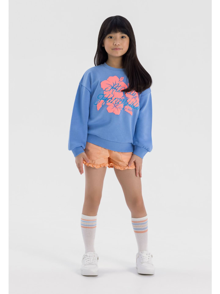 Мягкая хлопковая толстовка. Круглый вырез, рукава и подол выполнены в рубчик. Декоративный принт спереди.