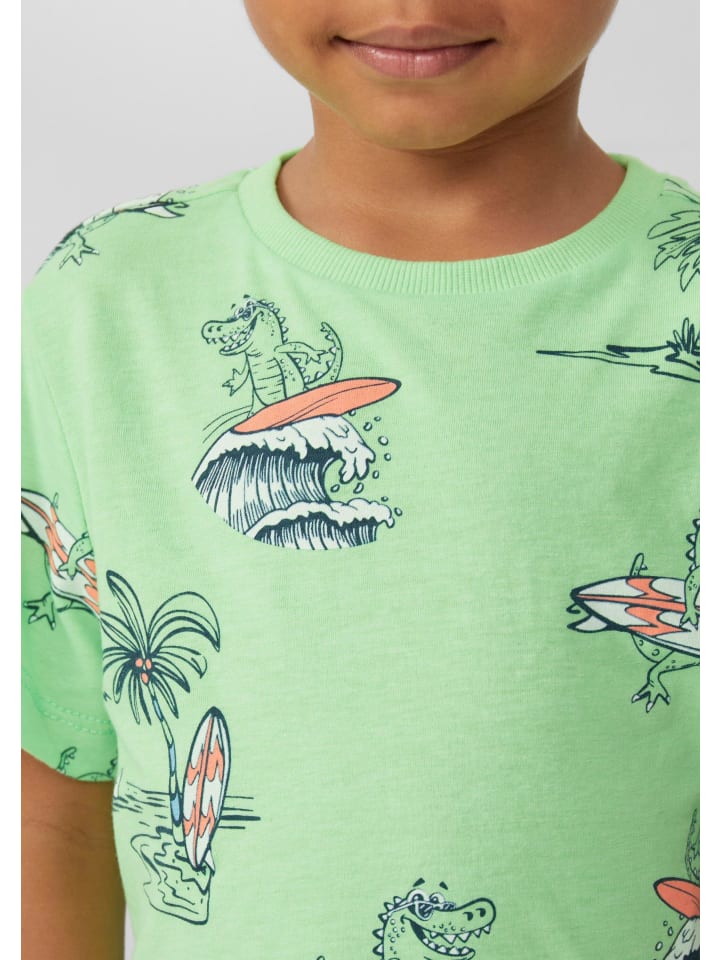 Купите нашу игривую хлопковую футболку с веселым принтом по всей поверхности для вашего ребенка! Мягкий трикотаж и удобный классический крой обеспечат уют во время игр и резвости. Короткие рукава и круглый вырез горловины сделают эту футболку идеальным спутником в теплые дни. Яркая базовая модель для маленьких искателей приключений!