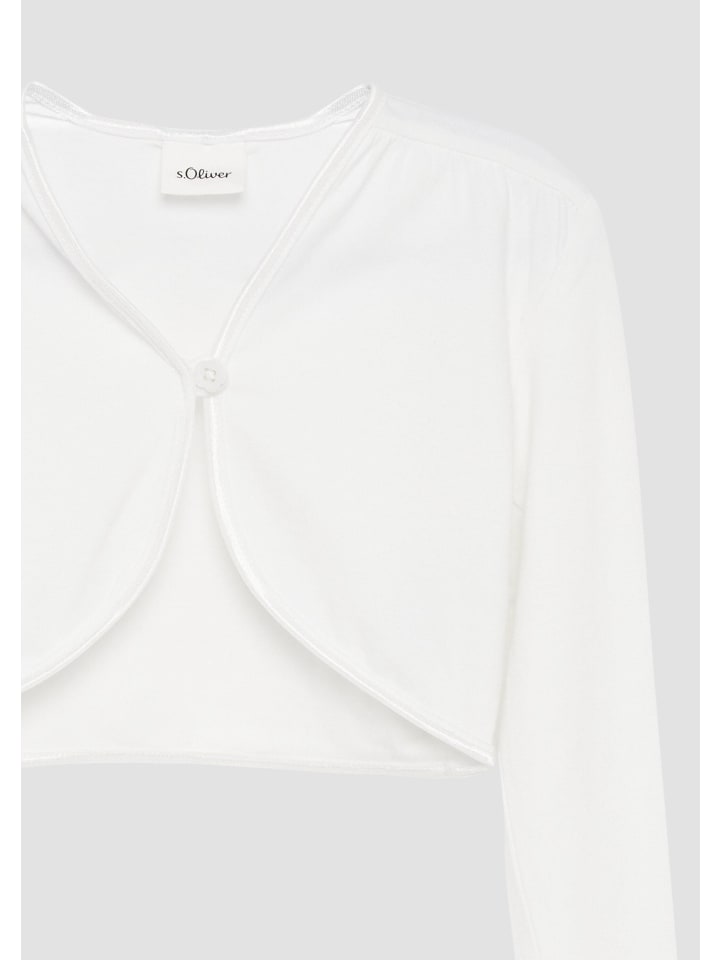 Праздничное болеро с длинными рукавами из мягкого хлопкового трикотажа для маленьких принцесс. Классический крой и атласная отделка придают верху элегантность. Красивая пуговица в виде цветка сделает любой наряд по-настоящему притягивающим взгляд. Идеально подходит для особых случаев или как стильный повседневный аксессуар для детей от 2 до 9 лет.