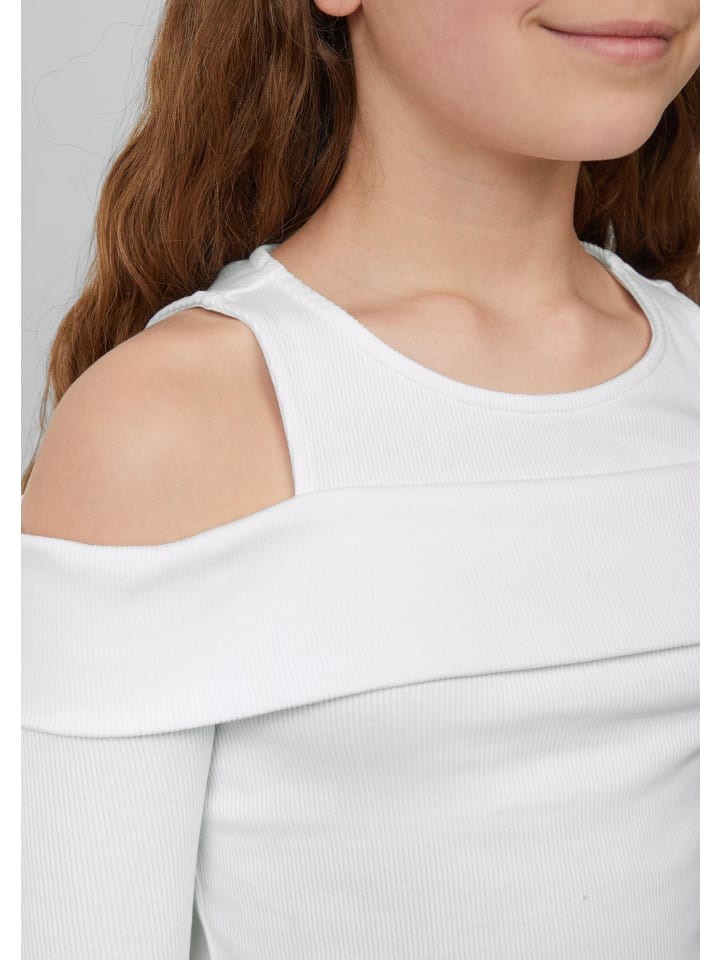 Модный укороченный топ для модниц! Этот облегающий топ с ребристым узором, открытыми плечами и длинными рукавами - настоящая приманка для глаз. Эластичная хлопковая ткань обеспечивает комфорт и свободу движений. Идеально подходит для стильных повседневных образов или для встреч с друзьями. Универсальный must-have для юных модниц!
