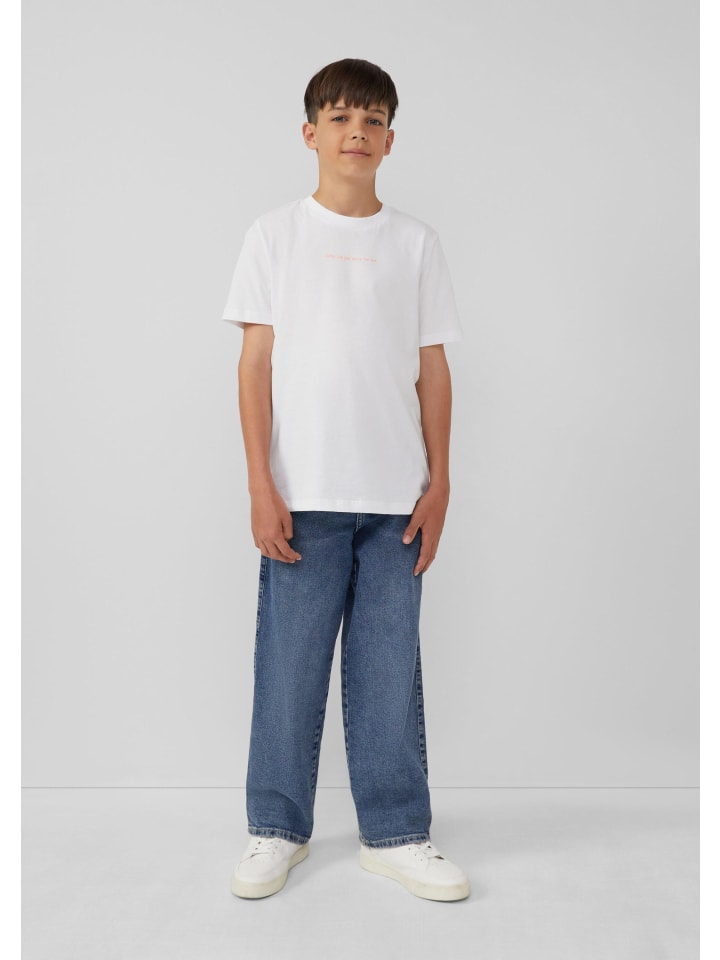 Повседневная хлопковая футболка для активных детей! Комфортная трикотажная ткань и классический крой обеспечивают свободу движений во время игры. Благодаря стильному принту спереди и сзади, эта футболка станет любимой футболкой вашего ребенка. Идеально подходит для летних дней и легко комбинируется - универсальная базовая вещь на каждый день.
