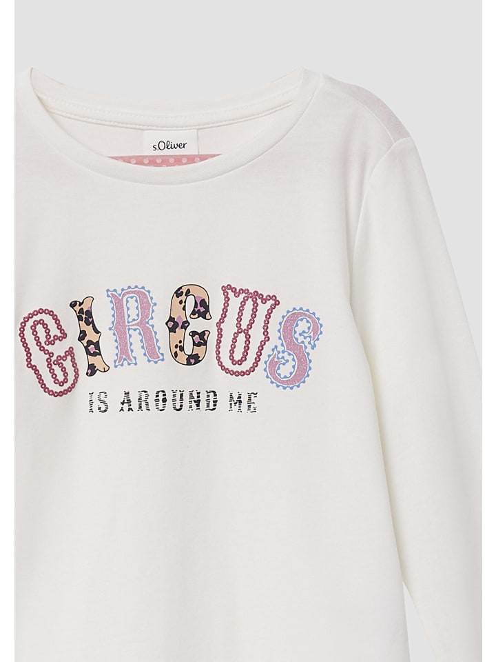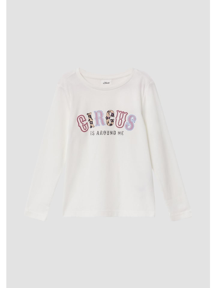 Эта футболка из чесаного трикотажа с длинными рукавами свободного кроя с прорезиненным принтом спереди и блестящими деталями. Круглый вырез горловины с ребристой отделкой обеспечивает комфортную носку. Изготовленная из мягкого хлопка, она станет идеальным спутником вашего ребенка в школе и на отдыхе.