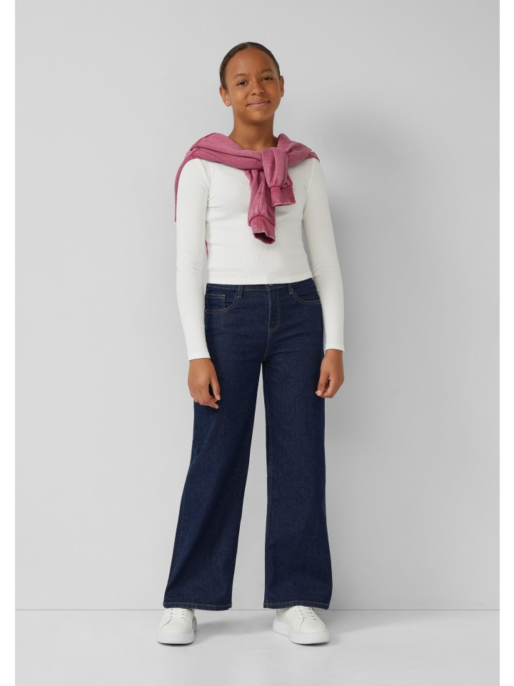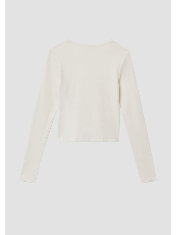 Эта рубашка облегающего кроя с длинными рукавами выполнена из эластичной трикотажной ткани в рубчик и украшена элегантными кружевными деталями. Хлопок с начесом обеспечивает тепло и комфорт. Круглый вырез горловины и укороченная длина придают топу модный вид - идеально подходит для школы и отдыха.