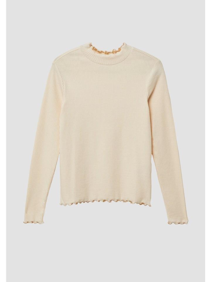 Эта приталенная рубашка с длинными рукавами из эластичного трикотажа в рубчик имеет практичный воротник-стойку и высококачественный подвернутый край. Удобная хлопковая ткань делает ее универсальной вещью для школы и отдыха.