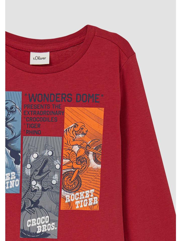 Эта рубашка с длинными рукавами из мягкого хлопкового трикотажа украшена стильным принтом спереди. Круглый вырез горловины с ребристым краем обеспечивает комфорт. Свободный крой обеспечивает свободу движений активным детям как в повседневной жизни, так и во время приключений.