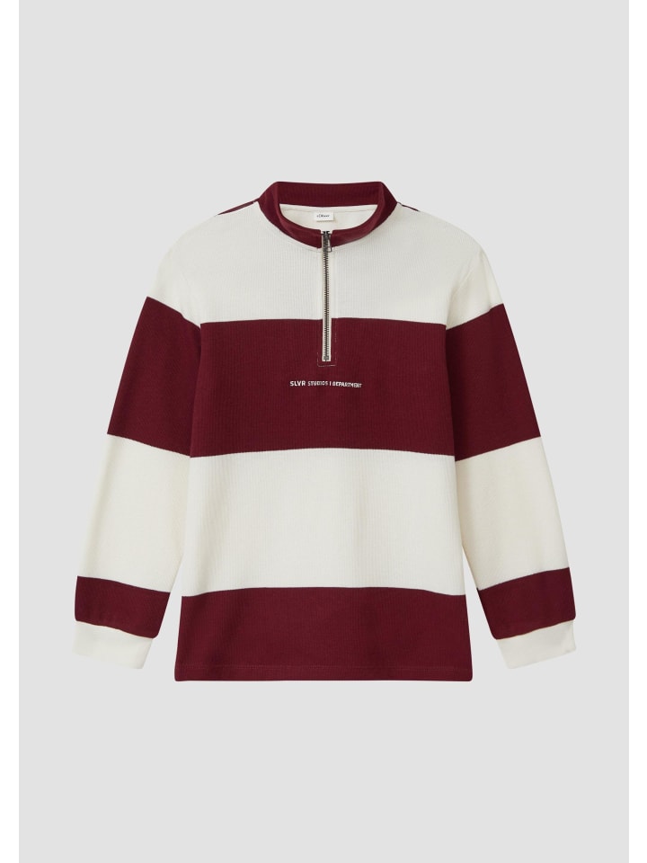 Стильная рубашка с длинными рукавами из трикотажа в рубчик, водолазкой и застежкой-молнией для вашего ребенка. Полосатый рисунок и вышитые детали придают рубашке особый вид. Идеально подходит для прохладных дней и достаточно универсальна, чтобы сочетаться с другими вещами.