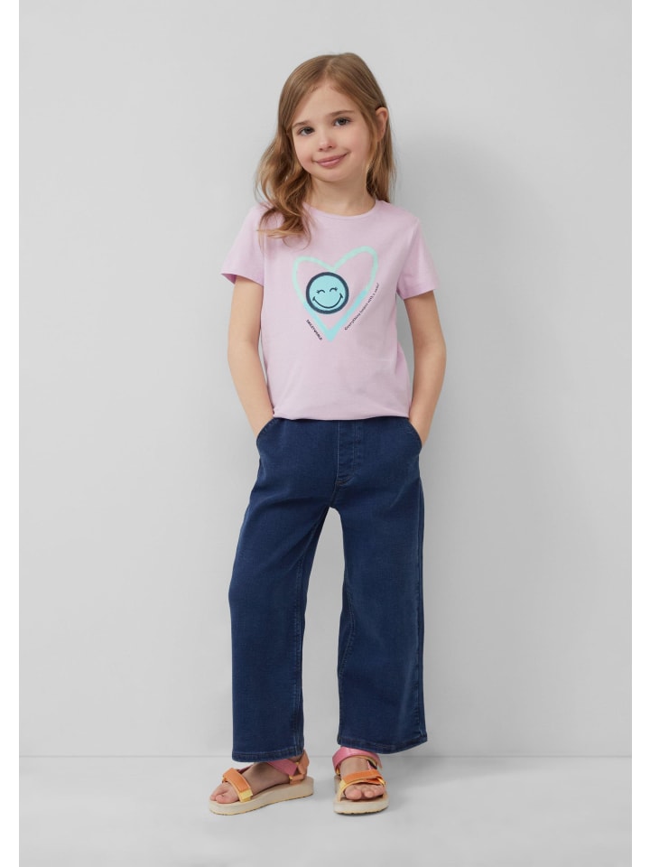 Повседневная футболка со смайликом для стильных детей. Уютный хлопковый трикотаж свободного кроя обеспечивает свободу движений во время игры. Веселый принт спереди вызовет улыбку на каждом лице. Идеально подходит для расслабленных летних дней или в качестве удобного школьного комплекта. Вашему ребенку понравится эта футболка с начесом.