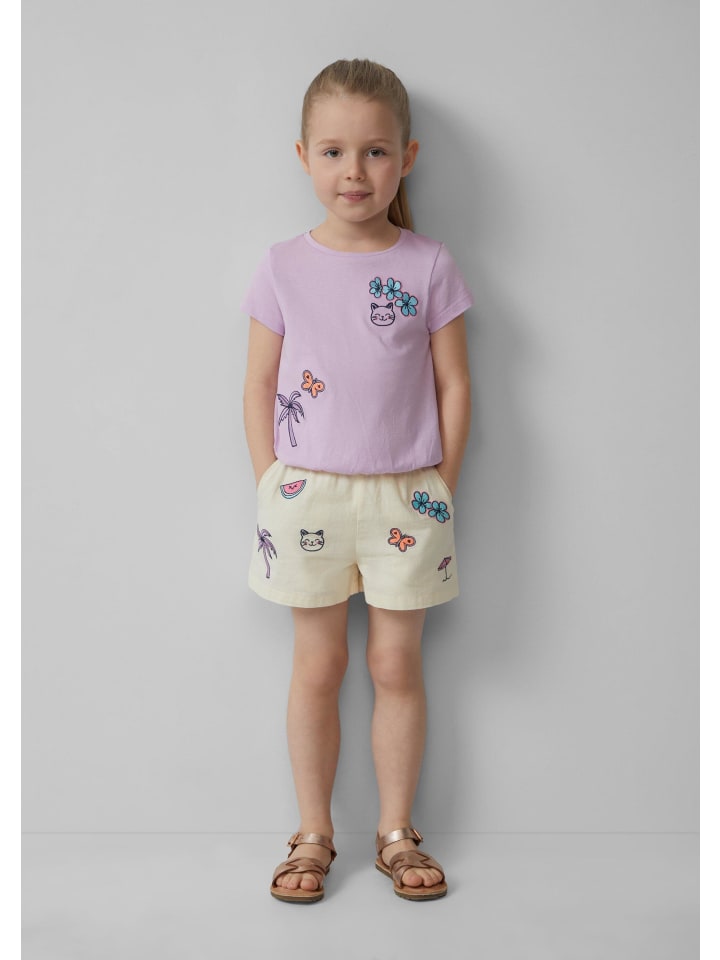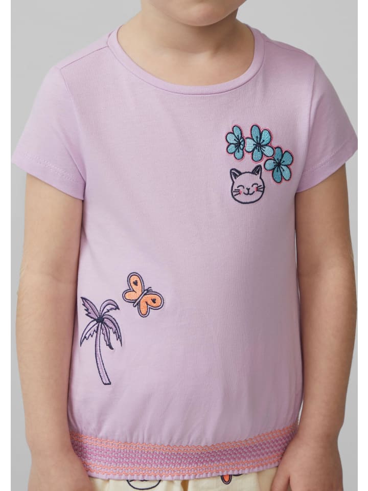 Летняя футболка из мягкого трикотажа для активных детей. О-образный крой и присборенный подол обеспечивают свободу движений во время игры. Милая вышивка делает футболку по-настоящему привлекательной. Идеально сочетается с шортами или юбками для создания повседневных летних образов. Удобная и незаменимая вещь для теплых дней!
