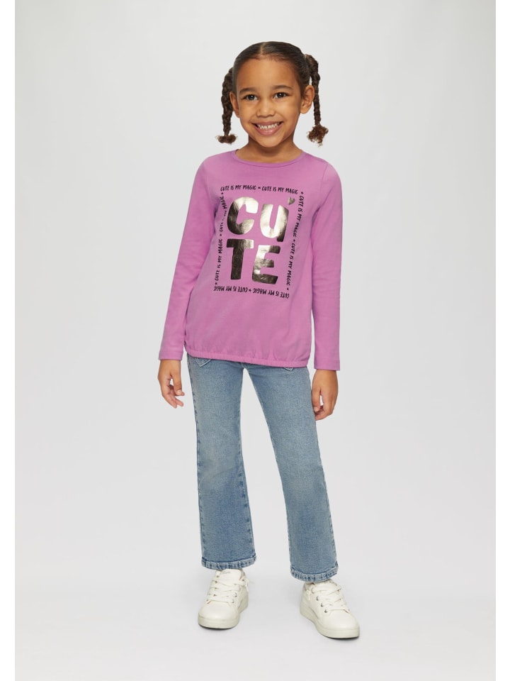 Вашему ребенку понравится эта уютная футболка с длинными рукавами! Изготовленная из мягкого хлопка, она обеспечивает максимальный комфорт для активных детей. Вырез горловины и свободный О-образный крой делают ее универсальным фаворитом для школы и отдыха. Модный принт с фольгой делает любой наряд по-настоящему привлекательным - идеально для прохладных месяцев!