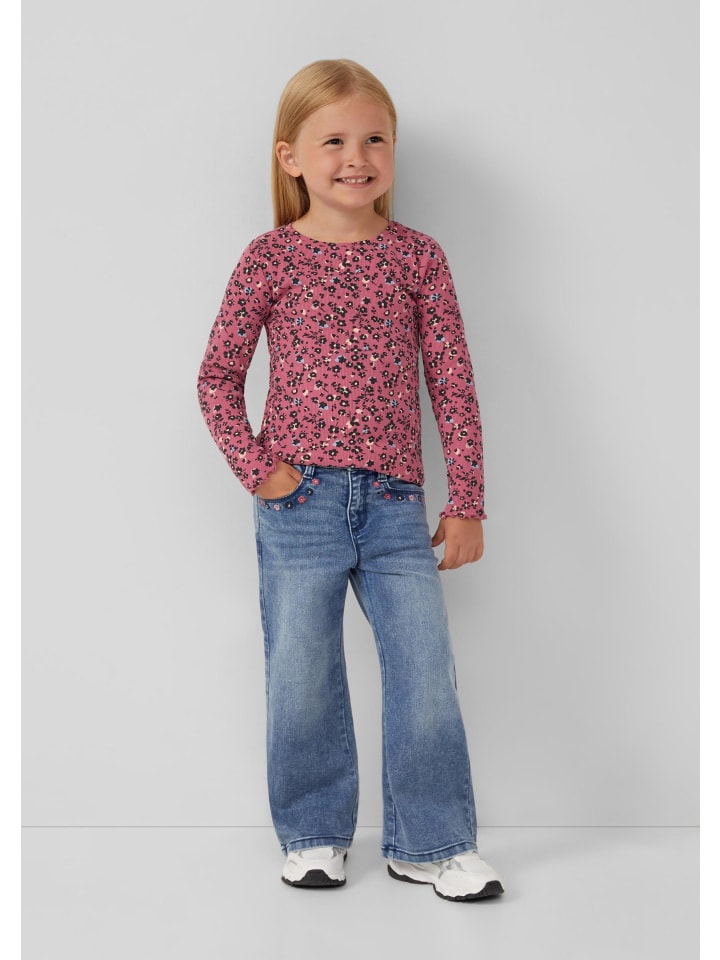 Этот облегающий топ в рубчик с длинными рукавами украшен красивым цветочным принтом по всей поверхности. Эластичная ткань и круглый вырез с подвернутым краем обеспечивают комфорт. Универсальный фаворит вашего ребенка. Идеально подходит для школы, отдыха и особых случаев.