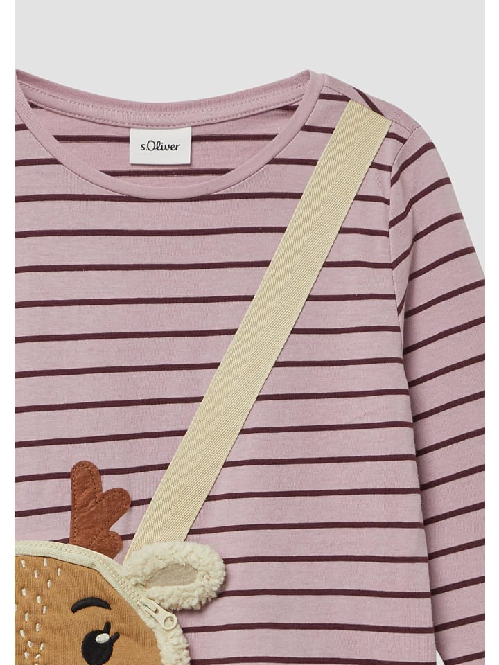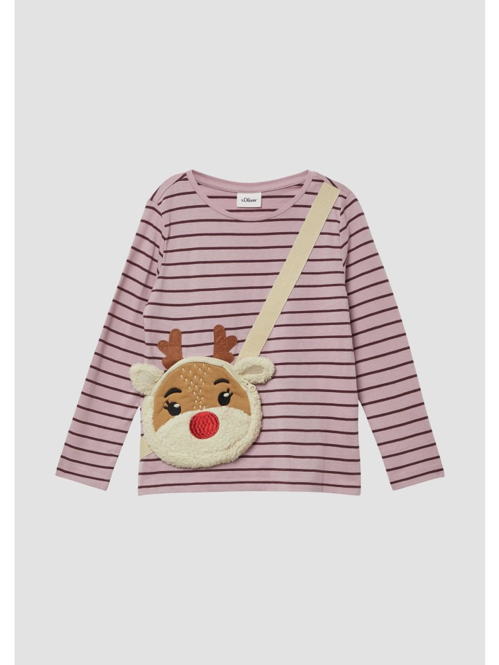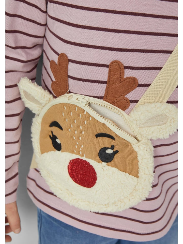 Полосатый топ с длинными рукавами, рождественским мотивом и практичным карманом на молнии. Трикотаж из чесаного хлопка согревает. Свободный крой обеспечивает максимальную свободу движений. Удобный и практичный вариант для предрождественского сезона!