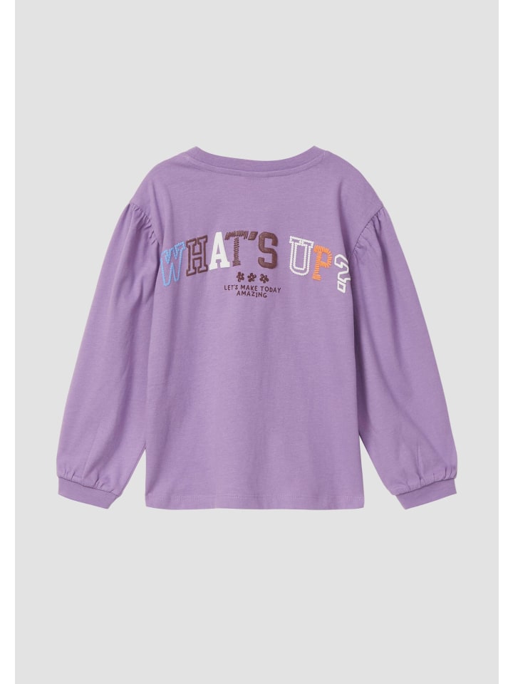 Эта рубашка из чесаного трикотажа с длинными рукавами свободного кроя, круглым вырезом и спущенной линией плеч. Блестящий принт с пеной, а также деталь на спине придают рубашке игривый вид. Идеально подходит для активных детей в повседневной жизни.